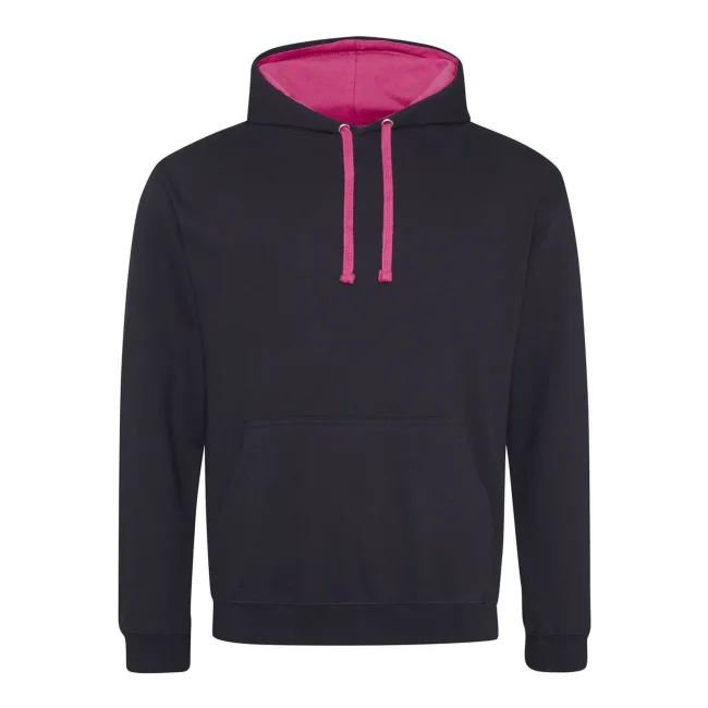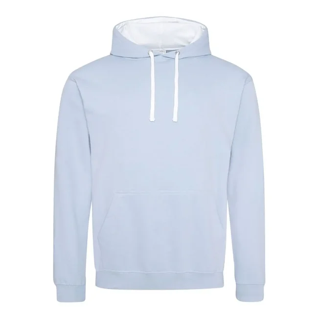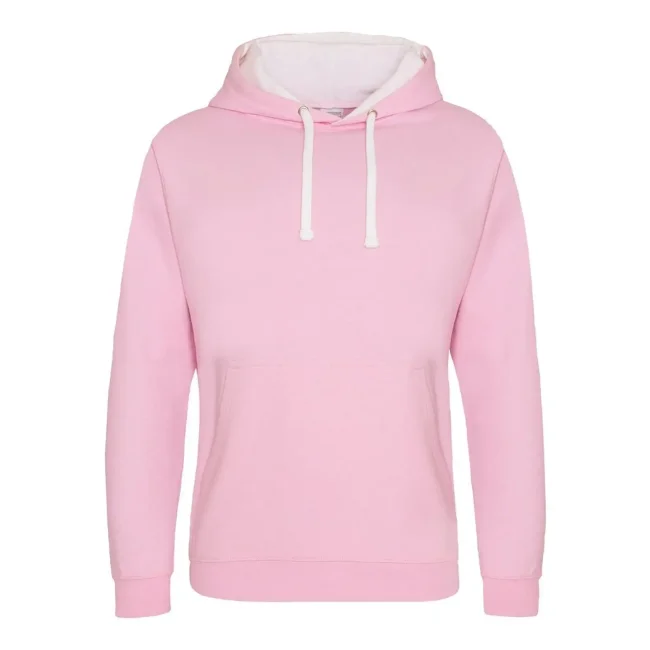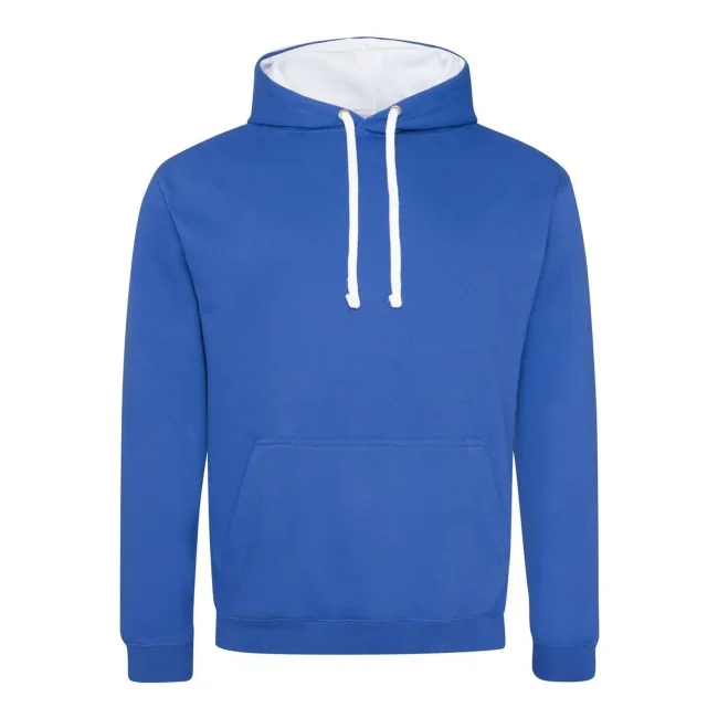 80% cotone, 20% poliestere. Felpa unisex con maniche set-in, parte interna del cappuccio e cordoncino piatto di colore contrastante, tasche frontali a marsupio, felpata internamente, struttura con cuciture laterali.