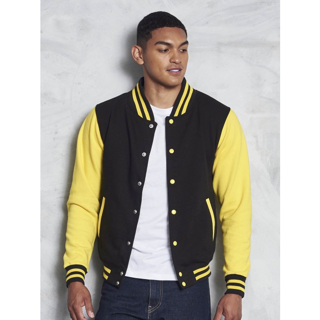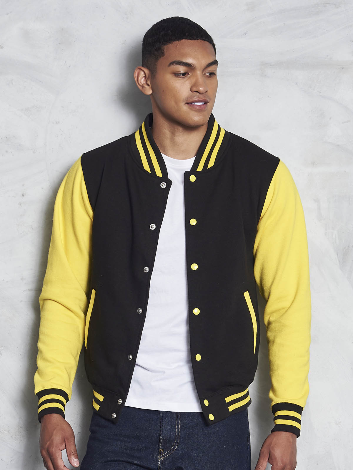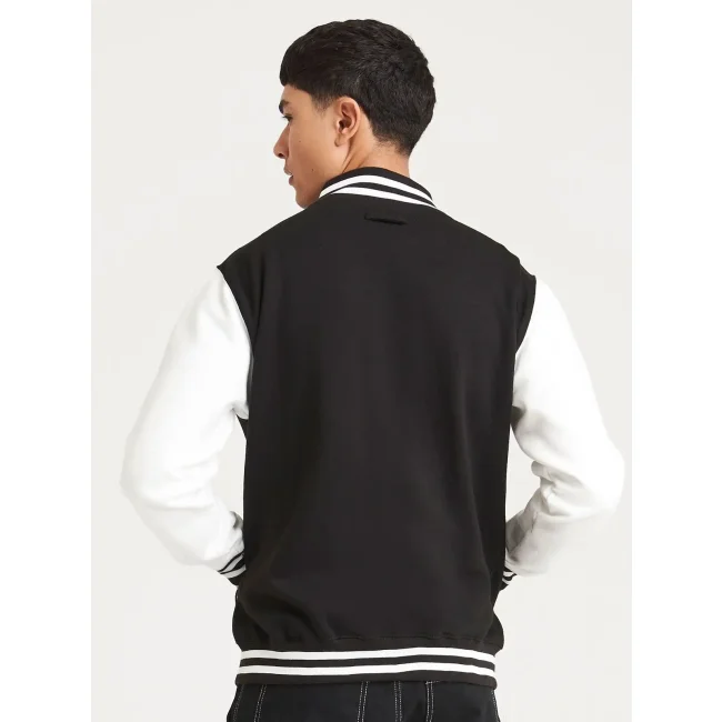 80% cotone, 20% poliestere. Felpa con maniche set-in di colore contrastante. Collo, polsini e orlo inferiore in maglia con strisce contrastanti. Nastro di rinforzo al collo, tasche di colore contrastante, struttura con cuciture laterali.