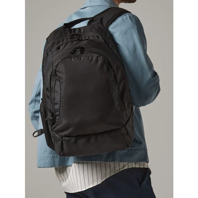 100% 600D poliestere. Zaino Bretelle imbottite e regolabili, compatibile con laptop fino a 15,6 pollici. Con numerosi compartimenti e tasche inter ne ed esterne. Tasche laterali con cerniera. Dimensioni: 30 x 48 x 30 cm. Capacità: 26 litri.