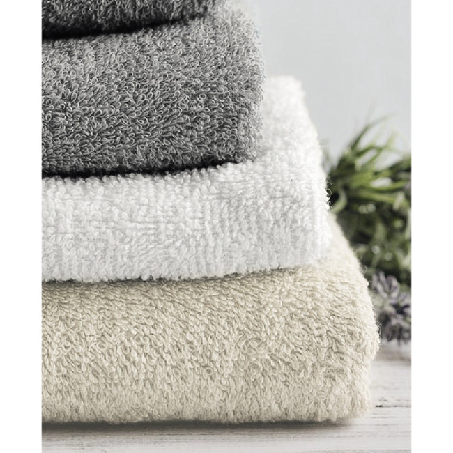 telo hotel/palestra/bagno spugna bordata cotone open end banda ''easy print'' personalizzabile Tecnica di stampa consigliata: Serigrafica 420 gr.