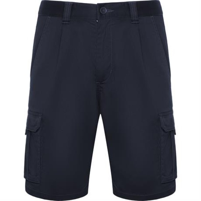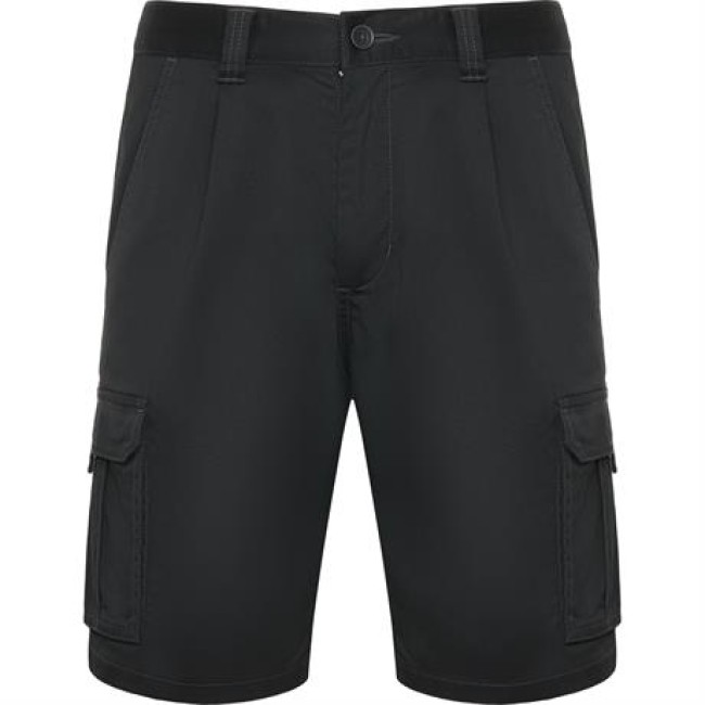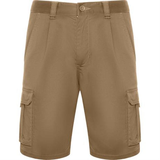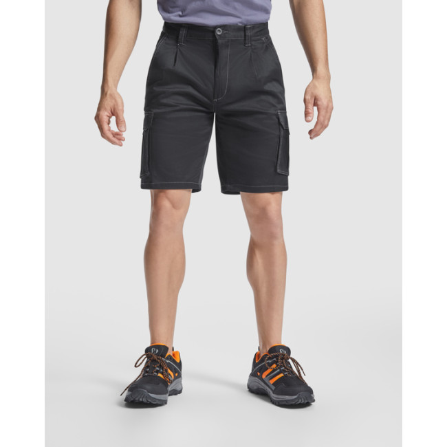 Pantaloncini con tasche.· Vita elasticizzata regolabile sul retro.· Due tasche anteriori.· Due tasche laterali con patta, chiusura con velcro e soffietto centrale.· Due tasche posteriori con patta e chiusura in velcro.