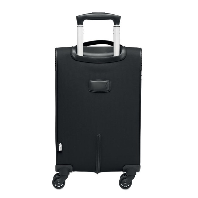 Trolley morbido in poliestere 600D RPET. Vano esterno con cerniera per laptop, tasca davanti con cerniera. Serratura combinata. Vano inferiore, telaio doppio tubo. Fodera 210D in RPET, dettagli in PU.