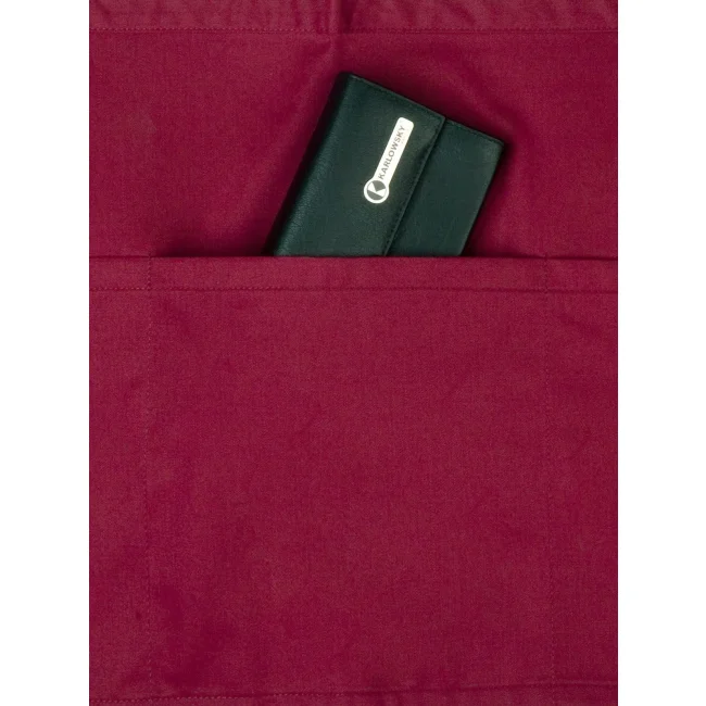65% poliestere, 35% cotone. Grembiule alla vita con fascia continua dello stesso tessuto, maggiore resistenza grazie a travettature sulle bretelle, tasca su tutta la lunghezza con 3 comodi scomparti (ognuno 20 x 22 cm).