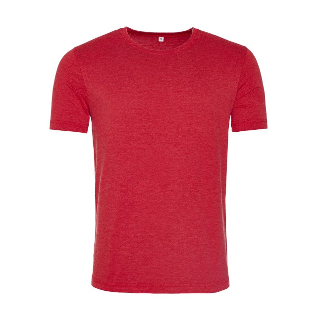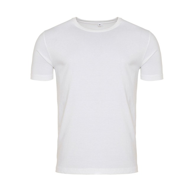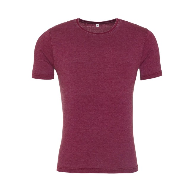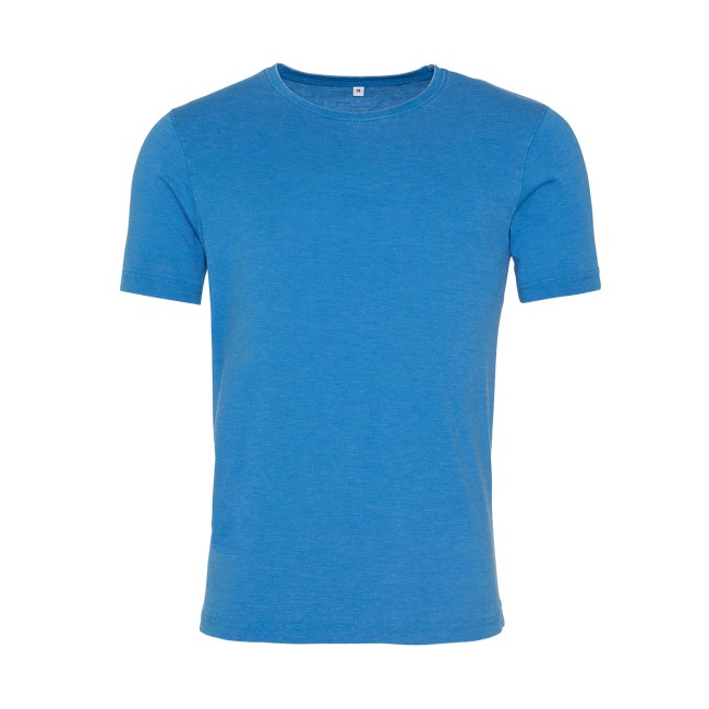 55% cotone ring-spun, 45% poliestere. T-shirt unisex manica corta set-in, girocollo a costine, effetto vintage slavato, taglio moderno, morbida al tatto, doppie cuciture sulle maniche e sul bordo inferiore, superficie adatta a stampa e ricami, etichetta al collo con solo la taglia.