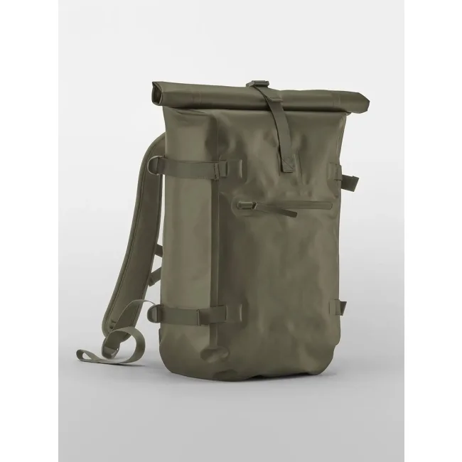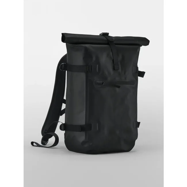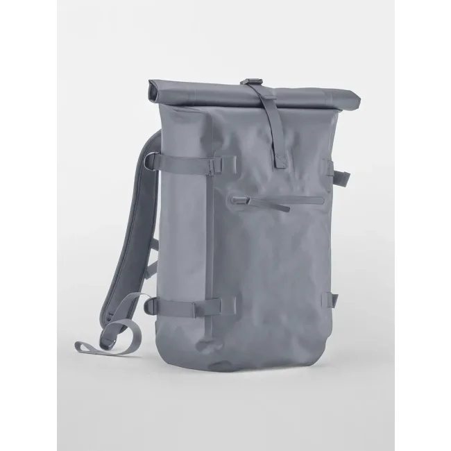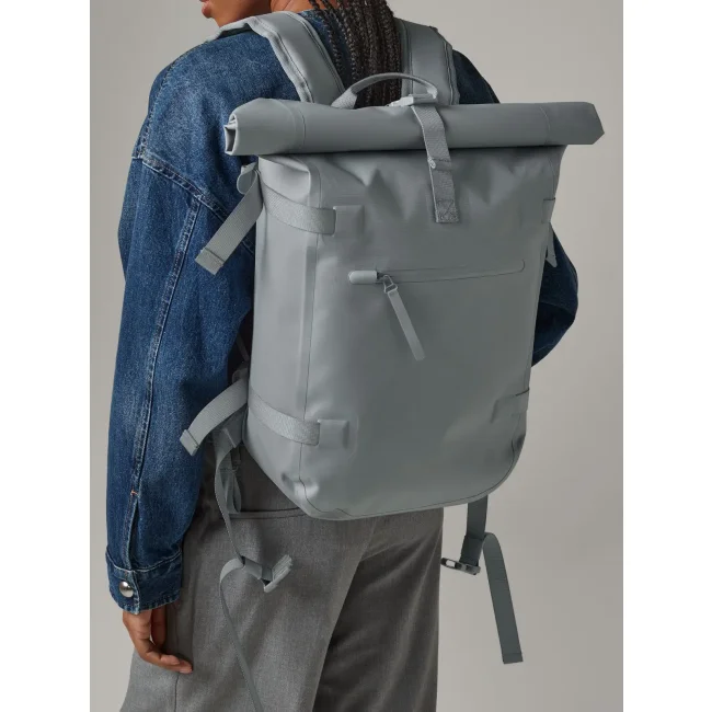 100% poliestere riciclato. Zaino con chiusura roll-top, tessuto impermeabile, scomparto principale impermeabile, tasca frontale con zip, doppie cinghie di compressione laterali, spallacci imbottiti e regolabili. Dimensioni: 31x12.5x46cm, Capacità: 18 litri. Etichetta strappabile.