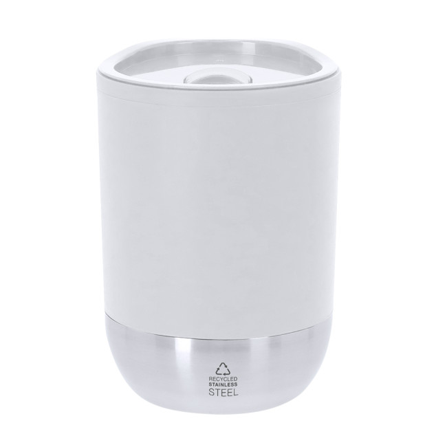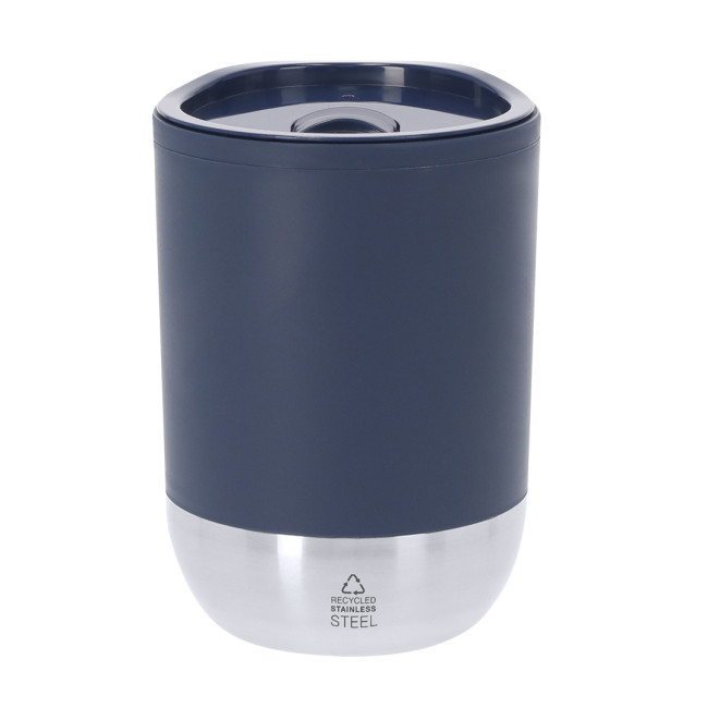 Tazza isolata con una capacità di 290 ml. Realizzata in PP riciclato a doppia parete resistente, in combinazione con una base in acciaio inossidabile riciclato. Coperchio di facile apertura con dispenser, senza BPA. È ideale per la tua scrivania, tavolo o qualsiasi superficie dove puoi goderti la tua bevanda preferita. Certificato per uso alimentare, garantendo la sicurezza quando il cibo entra in contatto con il materiale utilizzato per fabbricare il prodotto. Con logo in acciaio inossidabile riciclato.Il PP riciclato è una plastica riciclata e altamente riciclabile, altamente resistente e adatta a molteplici applicazioni.L'acciaio è uno dei materiali più ricercati e può essere trovato quasi ovunque, dai prodotti di uso quotidiano ai grandi edifici. Ha innumerevoli proprietà, tra cui durata e un alto grado di riutilizzabilità, rendendolo un'alternativa molto apprezzata per soluzioni sostenibili. Adeguatamente trattato, consente di ottenere nuove risorse di utilizzo infinito.