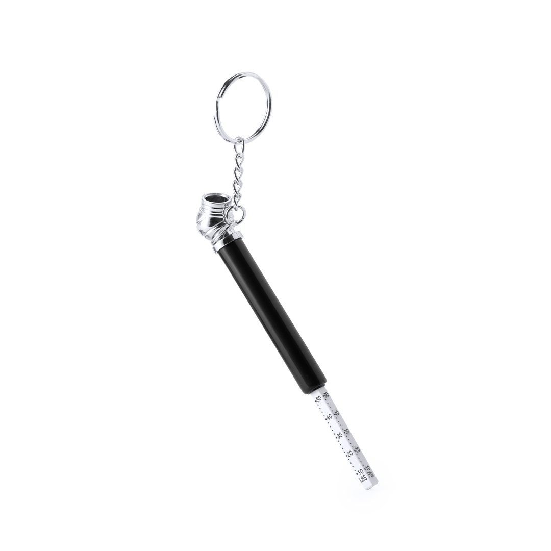 Portachiavi con manometro per pneumatici con corpo in alluminio in una varietà di colori vivaci e colorati.
