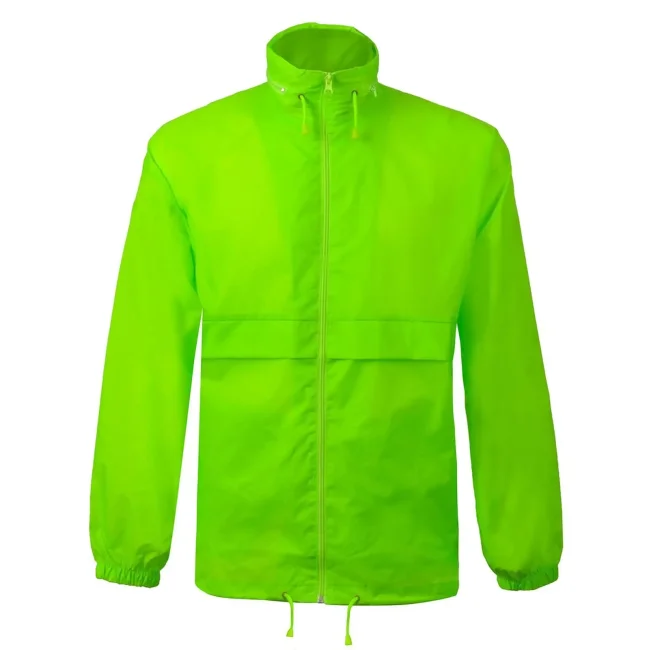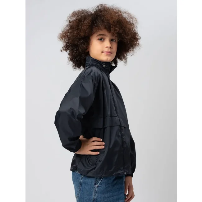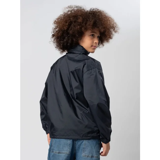 100% nylon. Giacca antivento richiudibile nella tasca, cappuccio a scomparsa, due tasche con cerniera, zip intera tono su tono, polsini elastici, cordoncino regolabile nell'orlo inferiore, fori di areazione.