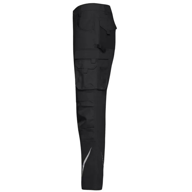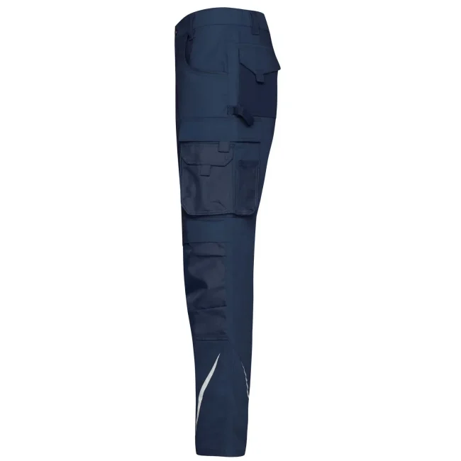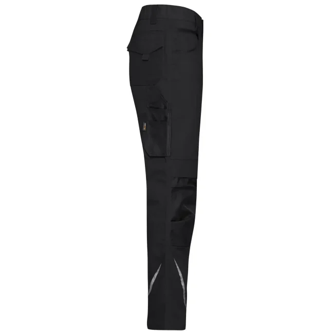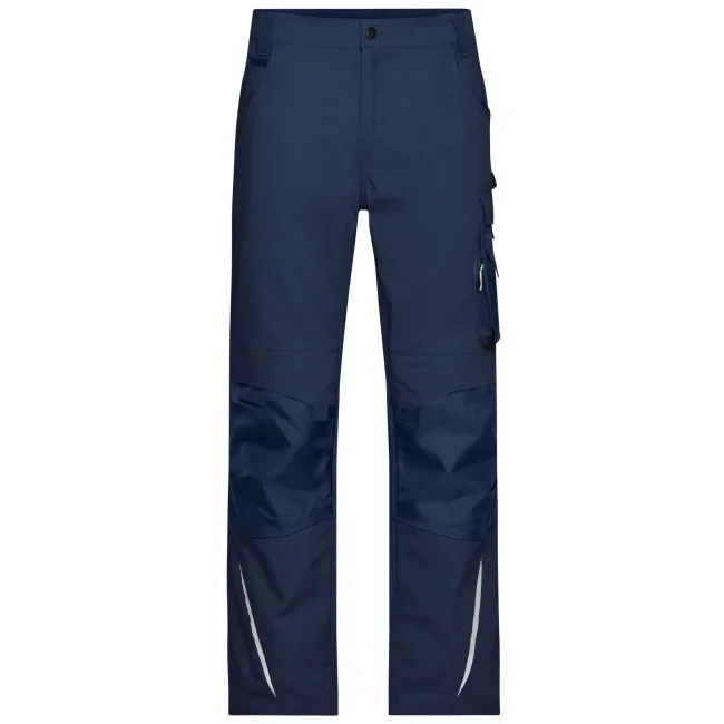 65% poliestere, 35% cotone. Pantalone da lavoro in tessuto misto, robusto e resistente, interno felpato, orlo elastico con passanti, tasca per ginocchiera rinforzata con CORDURA®, tripla cucitura antistrappo, varie tasche, elementi riflettenti (senza funzione protettiva/senza DPI) sul davanti e sul retro.