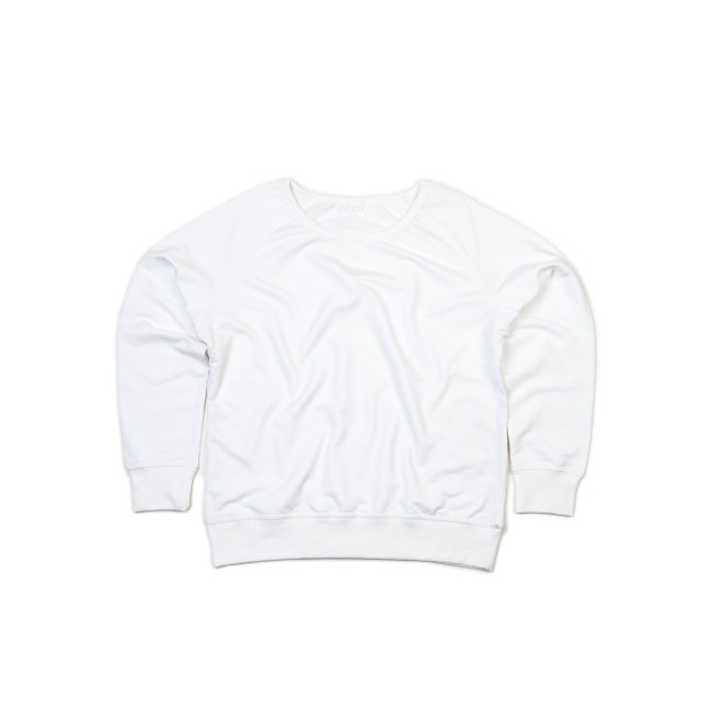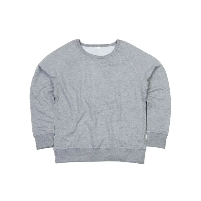80% cotone, 20% poliestere. Felpa con maniche raglan, ampio scollo con costina, sgarzata, struttura con cuciture laterali, etichetta strappabile. Col. SOL, SP: 80% cotone organico 20% rPET.