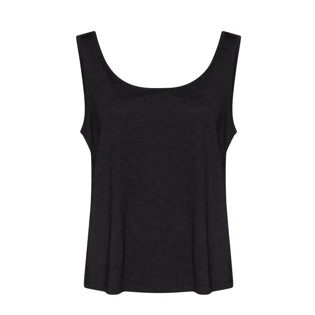 50% poliestere, 25% viscosa, 25% cotone. Canotta da donna, a scollo tondo, vestibilità morbida, con cuciture laterali e cuciture a doppio ago su orlo e giromaniche, solo etichetta taglia al collo. La canotta ha la parte posteriore più scollata rispetto a quella anteriore. Heather Black: 40% cot 40% visc 20% pol.