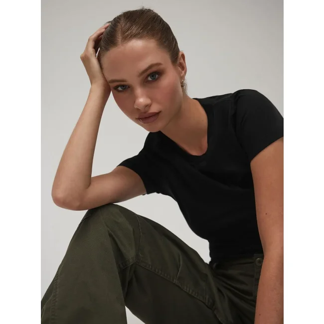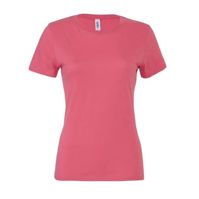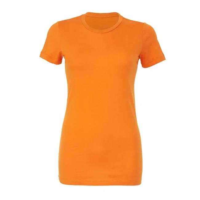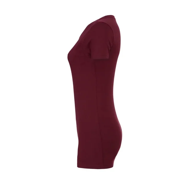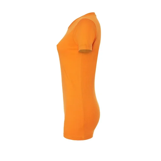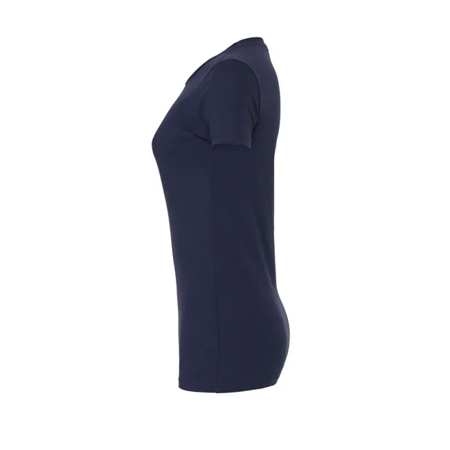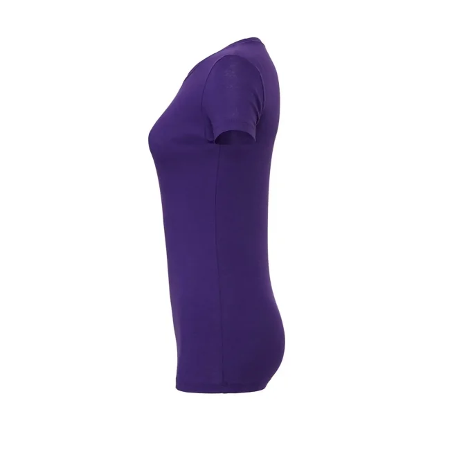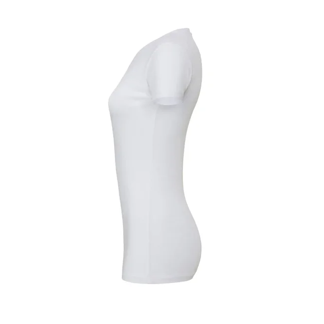 100% cotone pettinato ring-spun. T-shirt dal tocco soffice, struttura con cuciture laterali, nastro di rinforzo alle spalle, vestibilità femminile moderna: sagomata e lunga. Etichetta removibile. Col. 45: 90% cot. 10% pol. Heathers: 52% cot. 48% pol.