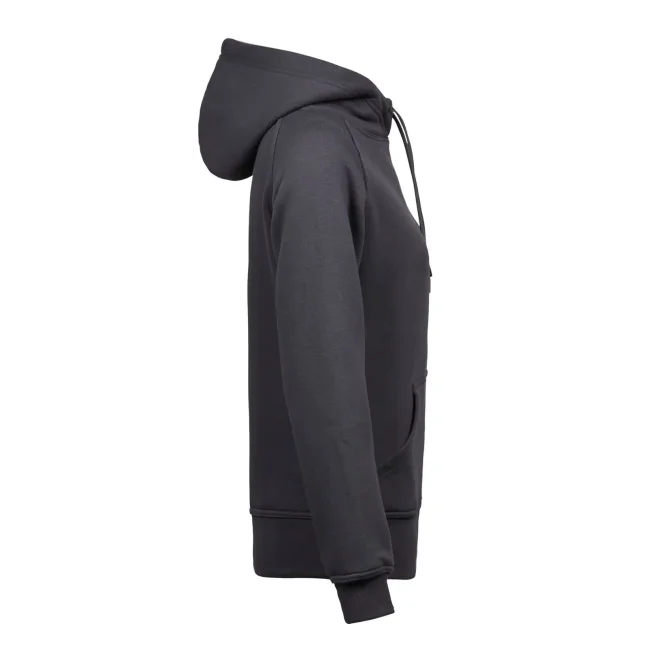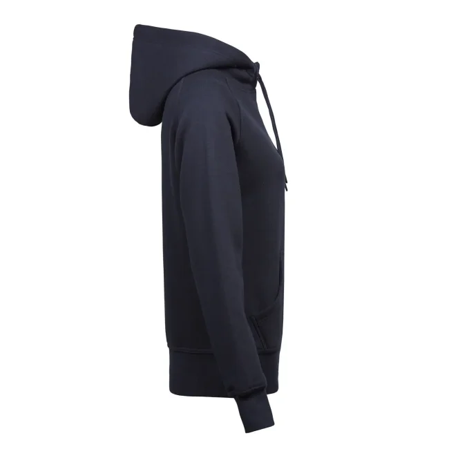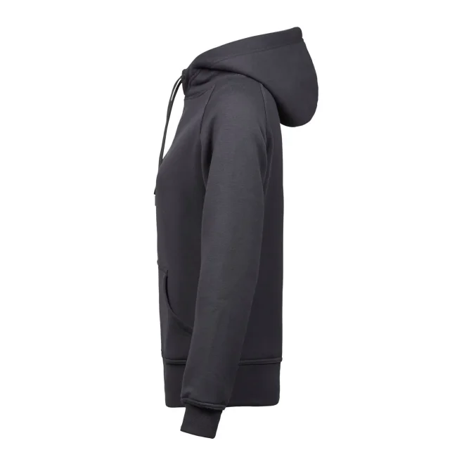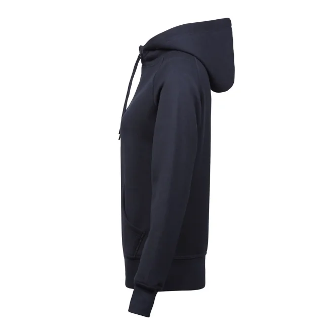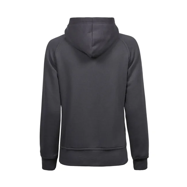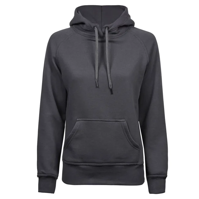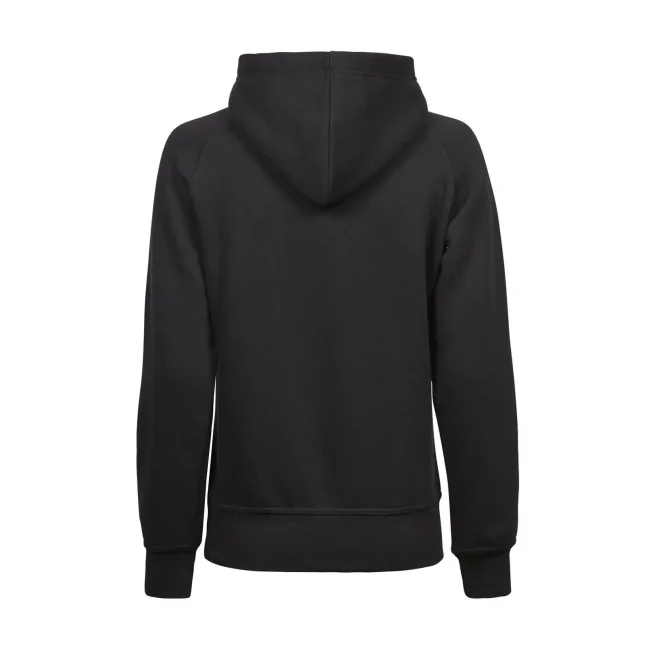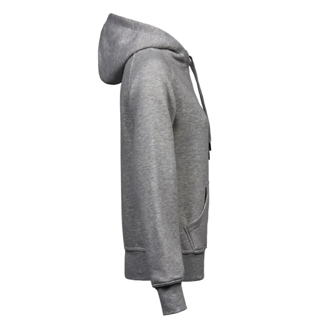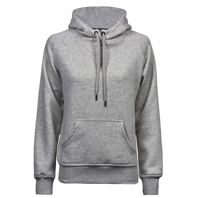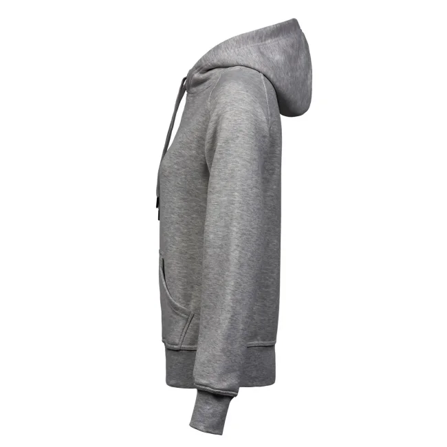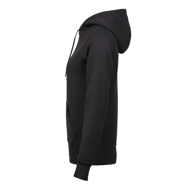 70% cotone ringspun, 30% poliestere. Felpa con cappuccio da donna di peso elevato, dotata di un'ampia tasca a canguro e di un cappuccio regolabile. Polsini e fascia doppia cucitura con elastane. Tessuto a 3 fili. Felpata internamente.