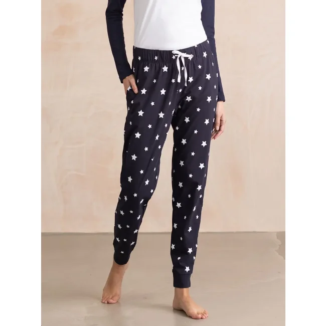 96% cotone, 4% elastan. Pantaloni da donna single jersey con vita elasticizzata e cordini, orlo con polsino, tasche laterali, etichetta strappabile.