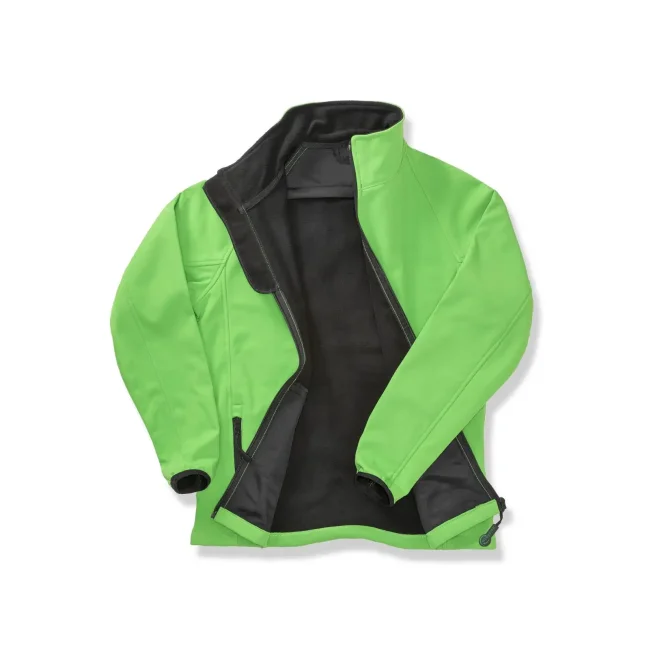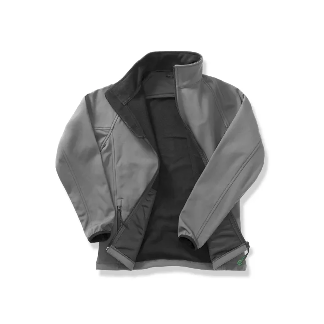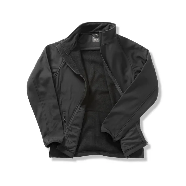 100% poliestere. La composizione del prodotto è in fase di conversione al polistere riciclato. Si prega di notare che è in corso la transizione delle giacenze. Giacca in softshell a due strati con interno in micropile, antivento e traspirante, zip con protezione per il mento YKK, 2 tasche laterali con zip, polsini elasticizzati, leggermente sfiancata.