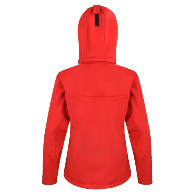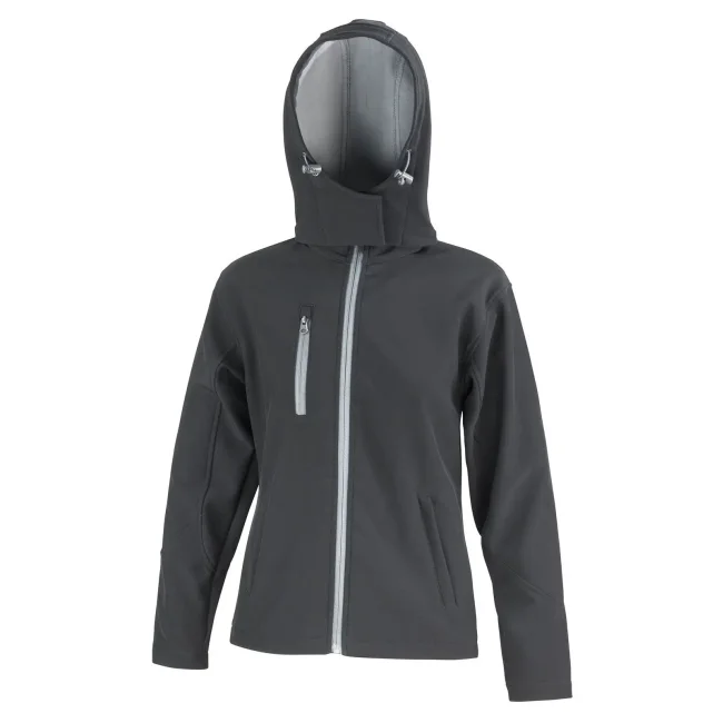 93% poliestere, 7% elastane. Giacca in softshell 3 strati anti-vento, traspirante e impermeabile, tessuto interno in caldo micropile, cappuccio regolabile e rimovibile, zip frontale intera e 1 tasca lato cuore con zip, etichetta neutra, leggermente sfiancata.