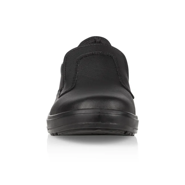 100% materiale sintetico. Scarpe unisex, leggere e traspiranti, con rivestimento antibatterico permanente, soletta in poliestere e suola in poliuretano, antiscivolo, con assorbimento dell'energia in caso di sovraccarico, lavabili fino a 40°. EN ISO 20347:2012, O1-FO-SRC.