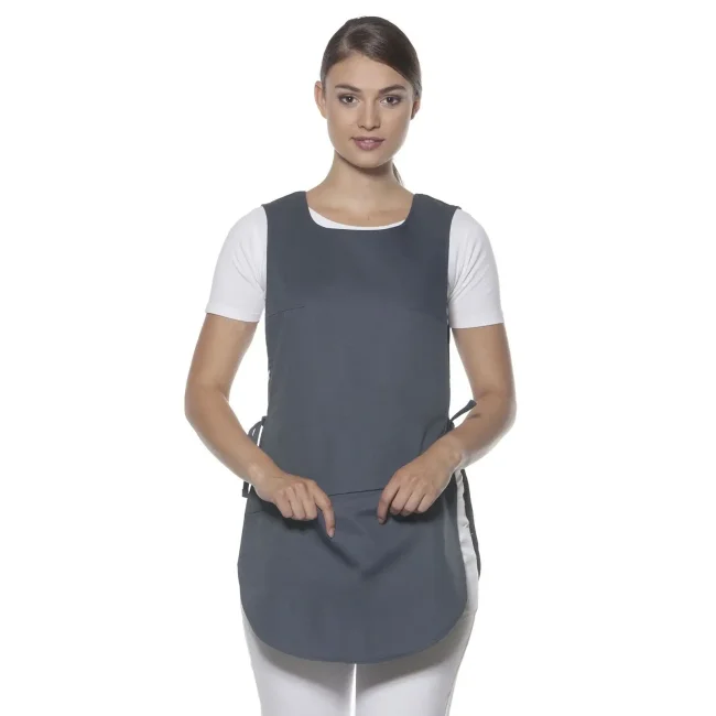 65% poliestere, 35% cotone. Tunica in tessuto rifinito e irrestringibile. Busto con stecche, tasca con cuciture nascoste. Adatta per lavaggio industriale.