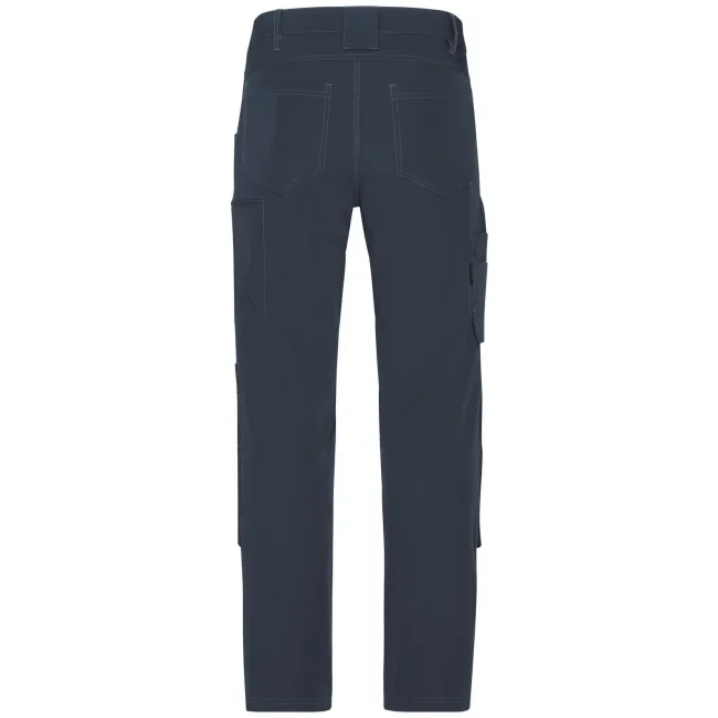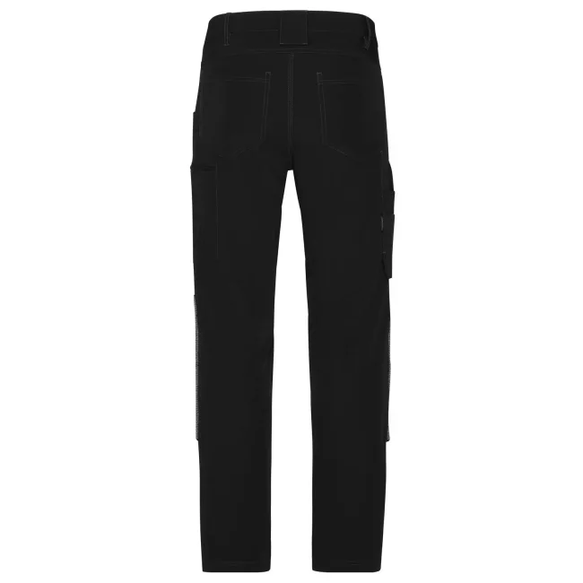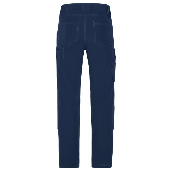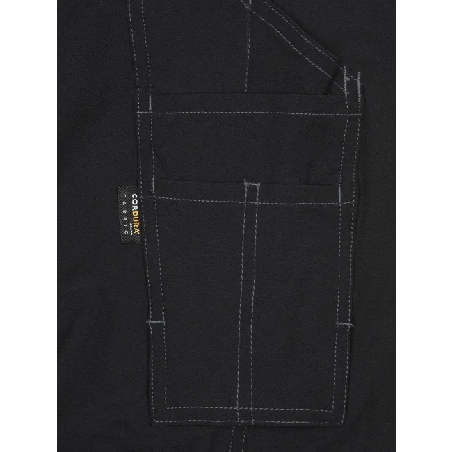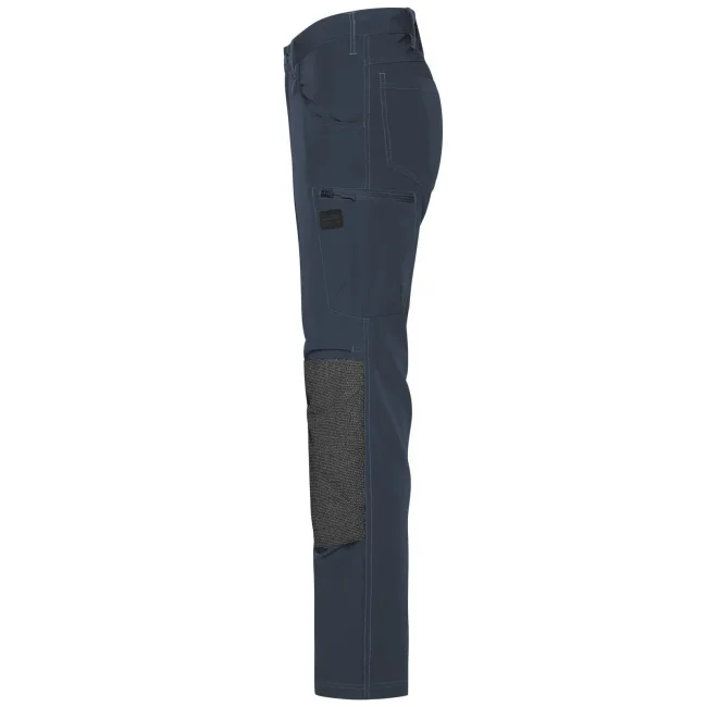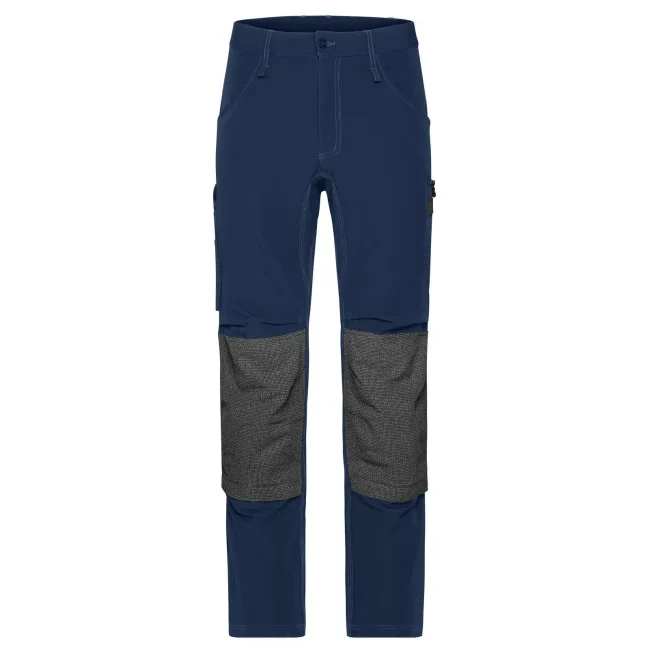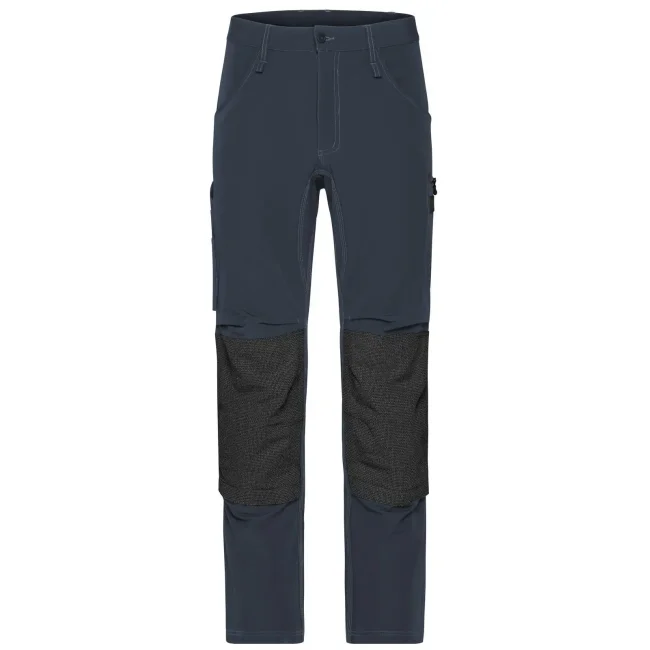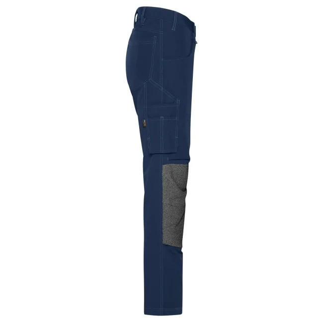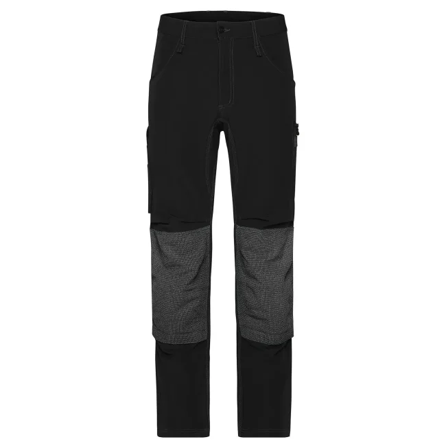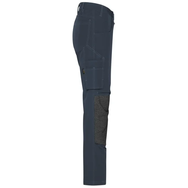 73% poliammide, 17% cotone, 10% elastan. Inserti: 80% poliammide, 15% poliestere, 5% elastan. Pantaloni da lavoro dal taglio aderente, resistenti ed elasticizzati, girovita con passanti per cintura, tasche imbottite sulle ginocchia rinforzate con CORDURA, cuciture triple, tasche varie, zip: YKK.