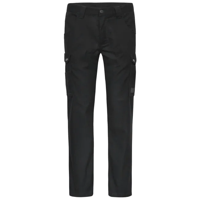 64% poliestere, 33% cotone, 3% elastan. Pantaloni da lavoro in tessuto misto confortevole, resistente e robusto con BIONIC FINISH®ECO, girovita con passanti per cintura, triple cuciture, due tasche frontali, due tasche posteriori, due tasche laterali con taschino porta attrezzi, taschino per cellulare, taschino porta penna, zip YKK, lavabile a 60° C, ideale per asciugatura in asciugatrice.