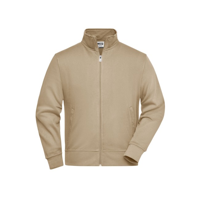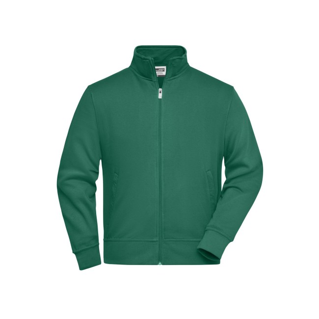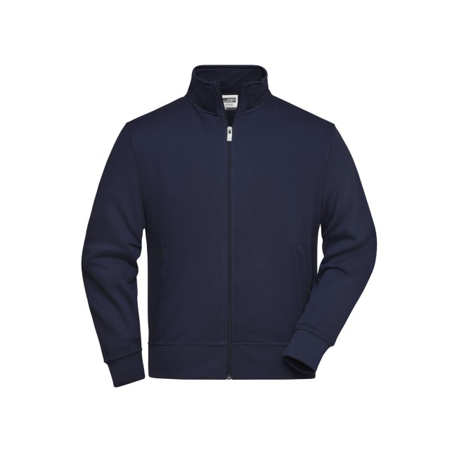 70% cotone, 30% poliestere. Felpa con maniche set-in, zip intera, tessuto misto resistente, polsini e girovita a costine con elastan, lavabile fino a 60°C. Struttura con cuciture laterali, felpata internamente.
