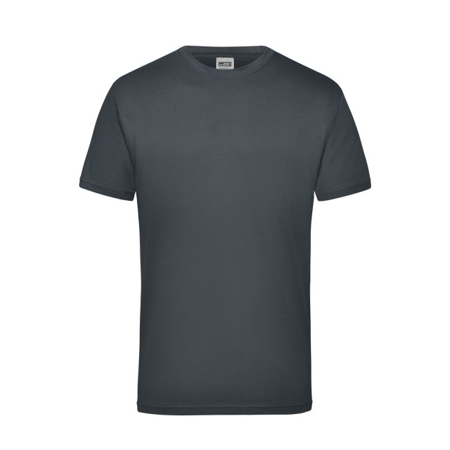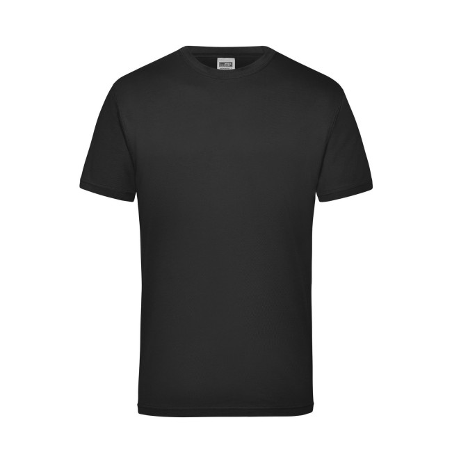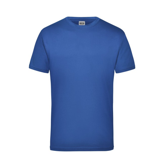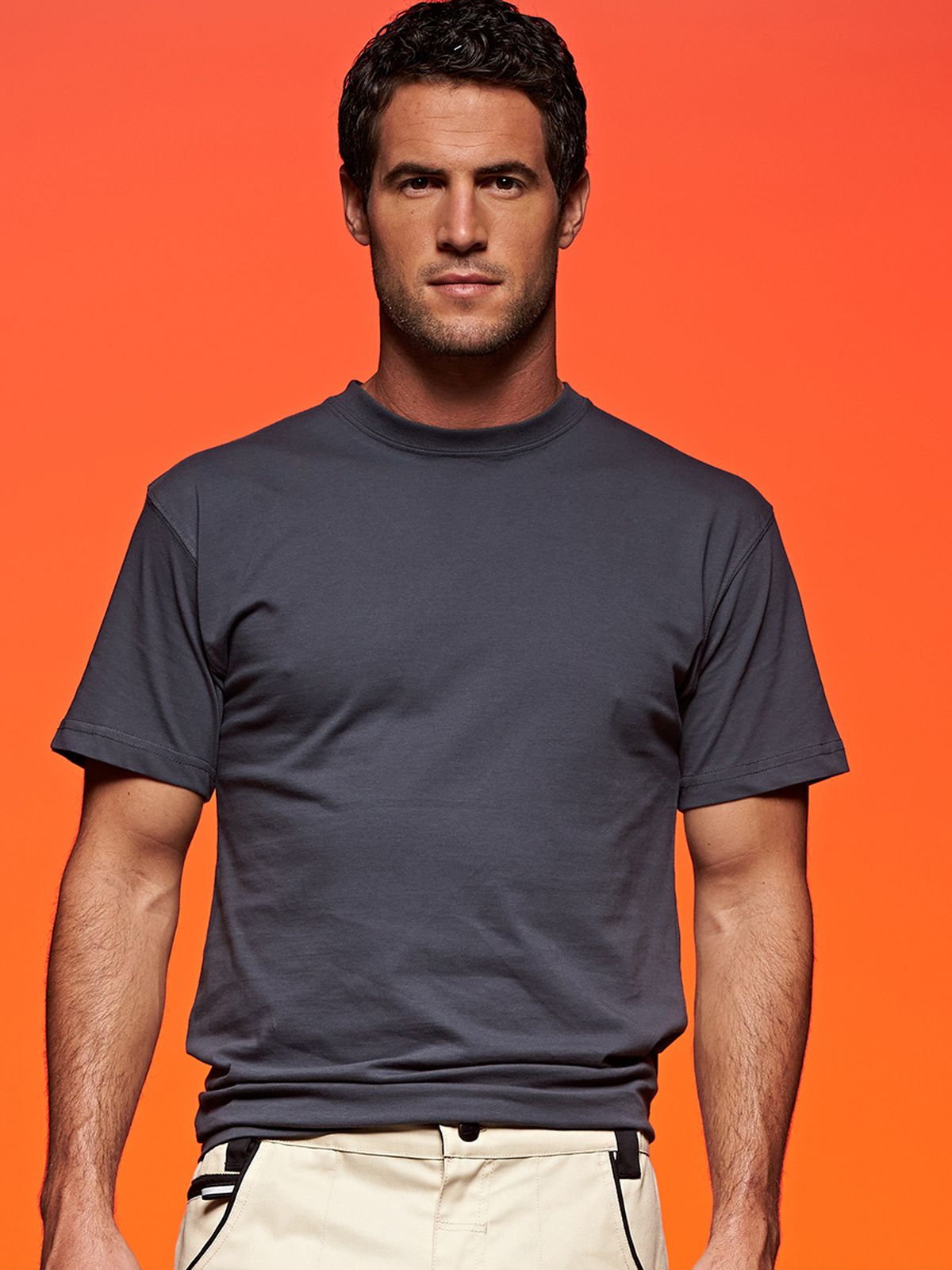 100% cotone. single jersey. T-shirt manica corta, girocollo, maniche set-in, nastro di rinforzo al collo, doppie cuciture. Bianco lavabile a 95°c, colorato lavabile a 60°c.