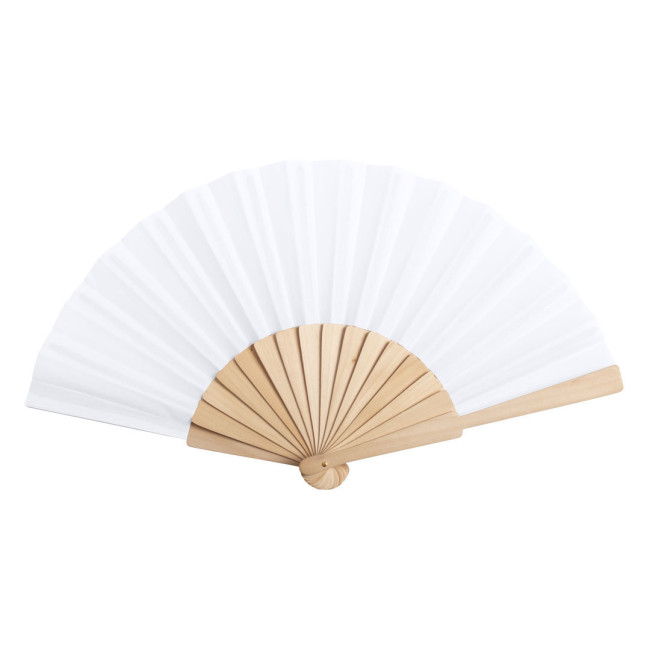 Ventilatore della linea Nature, con aste in legno e tessuto RPET, realizzato in plastica riciclata, al fine di promuovere il riutilizzo dei rifiuti di plastica e aiutare la sostenibilità del pianeta. Presentato in una confezione individuale eco design.