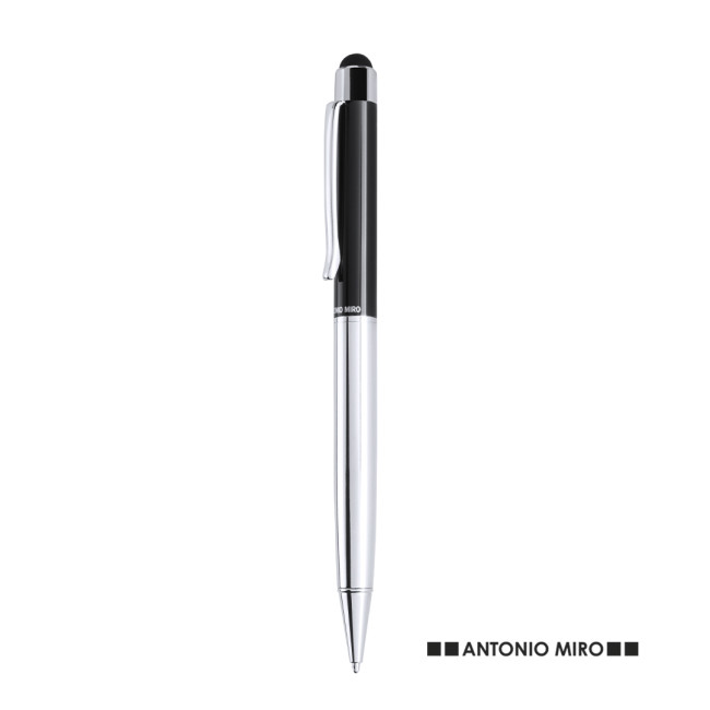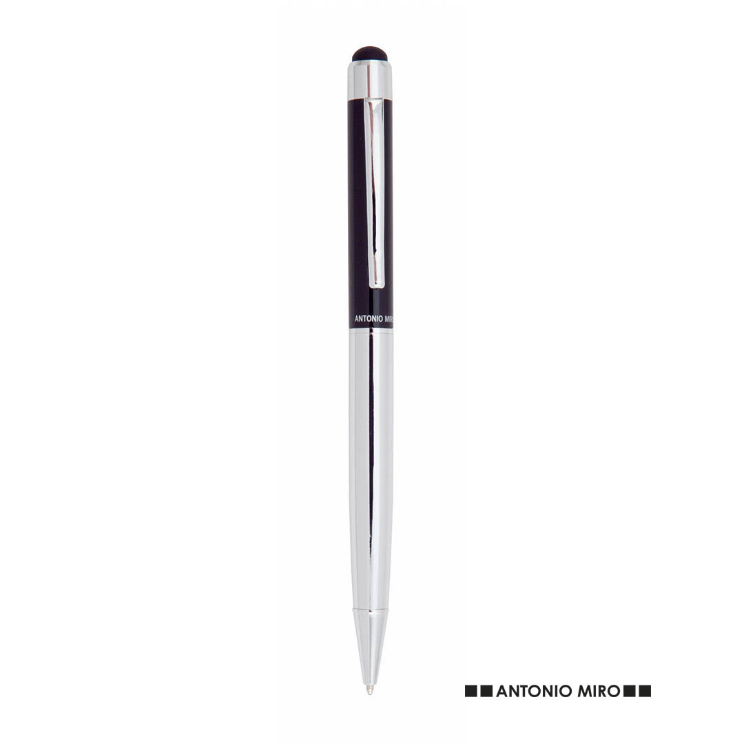 Penna touch by Antonio Miro con fusto in metallo liscio in un'elegante combinazione di colori argento e nero. Clip e punta dal design coordinato. Confezionata in un astuccio nero con logo del marchio. Inchiostro blu.