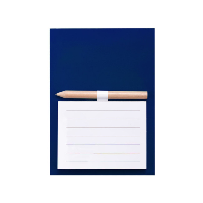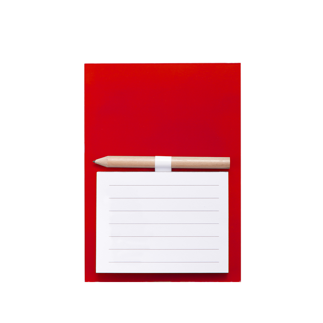 Calamita con block notes in robusto cartoncino in una varietà di colori vivaci. Blocco di 40 fogli con layout a una riga e porta mini matita incluso.
