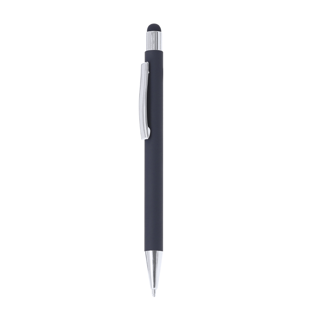 Penna punter realizzata in alluminio riciclato a meccanismo a pulsante. Pulsante e clip metallico con finitura cromata, finitura punter abbinata. Corpo in gomma, progettato specialmente per il marcaggio laser. Distintivo alluminio riciclato nella parte superiore della penna. Con cartuccia jumbo e inchiostro blu. L'alluminio riciclato è un materiale con possibilità di riciclo quasi infinite, senza perdere le sue proprietà originali e consumando meno energia in questo processo.Certificazione GRS (Global Recycled Standard / Standard di Riciclo Globale), che garantisce l'origine riciclata del materiale utilizzato per fabbricare il prodotto.