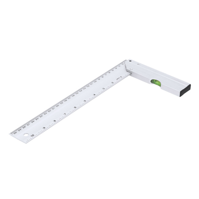 Squadra a forma di L, realizzata in alluminio, con lunghezza di 30,5 cm e misure in pollici di 10,5”. Progettata con un'impugnatura che incorpora un livello e un pratico foro per appenderla, facilitando il suo stoccaggio.