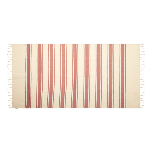 Asciugamano Pareo 2 in 1 in cotone organico da 110 g / m2. Dimensioni 180 x 90 cm e disponibile in una vasta gamma di colori combinati. Distintivo di etichetta biologica.