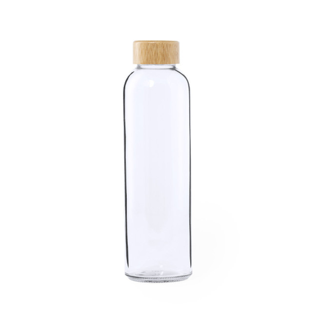 Bottiglia in vetro trasparente da 500 ml con tappo a vite in bambù e senza BPA. Presentato in un'attraente scatola kraft