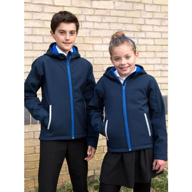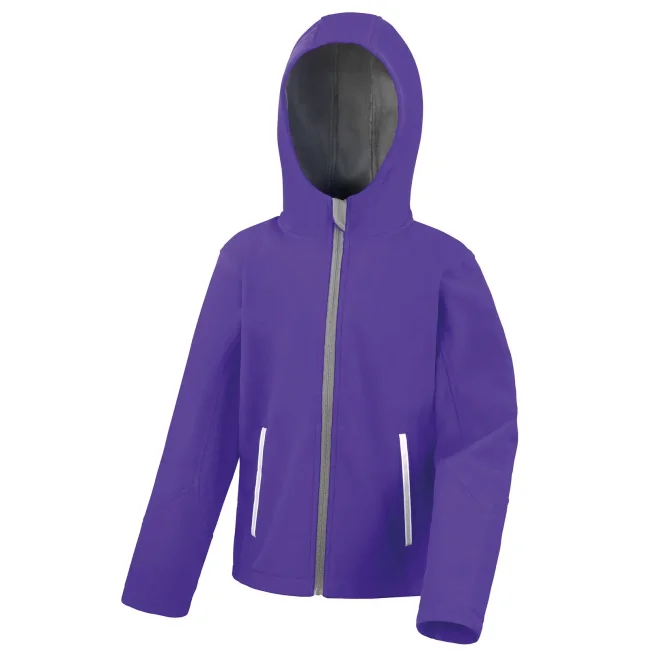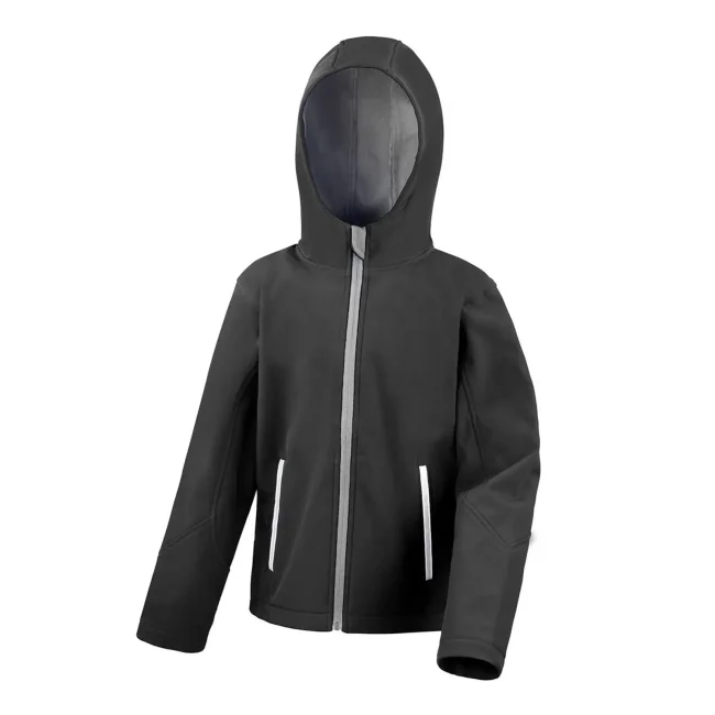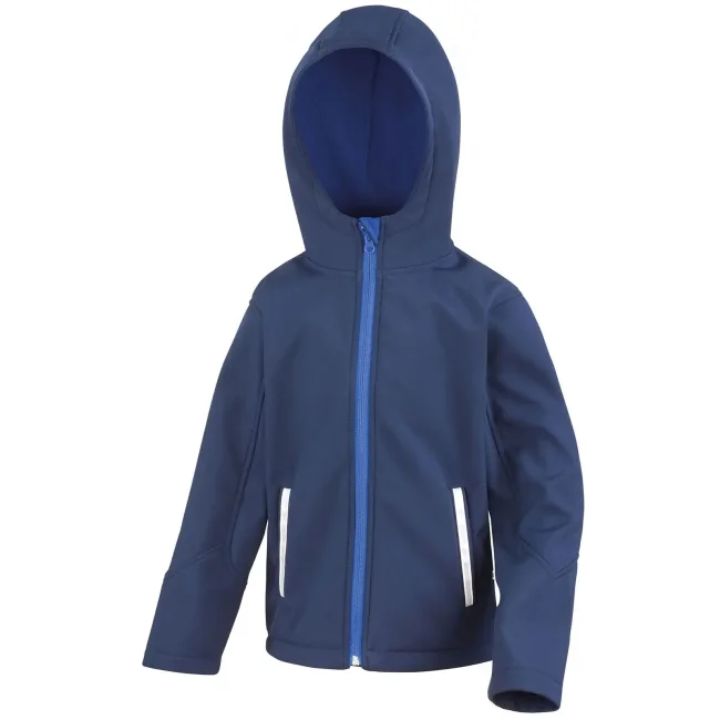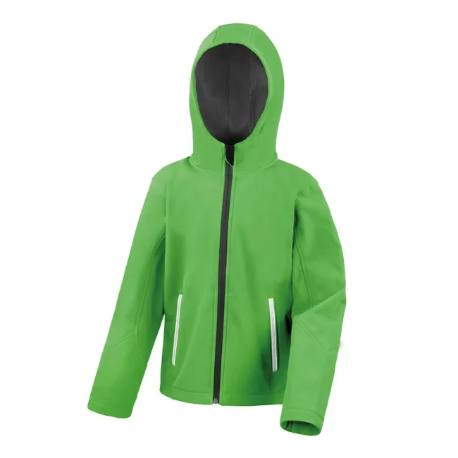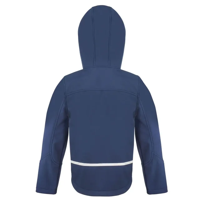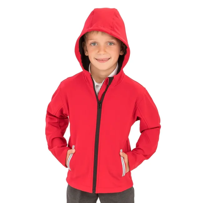 Esterno: 93% poliestere, 7% elastan. traspirante ( 1.000 gsm in 24 h), antivento e idrorepellente, (8.000 mm) con membrana TPU. Interno: 100% poliestere. Softshell con dettagli decorativi nelle maniche, cappuccio, cerniera intera con protezione per il mento, dettagli riflettenti nella parte anteriore e posteriore, unisex.