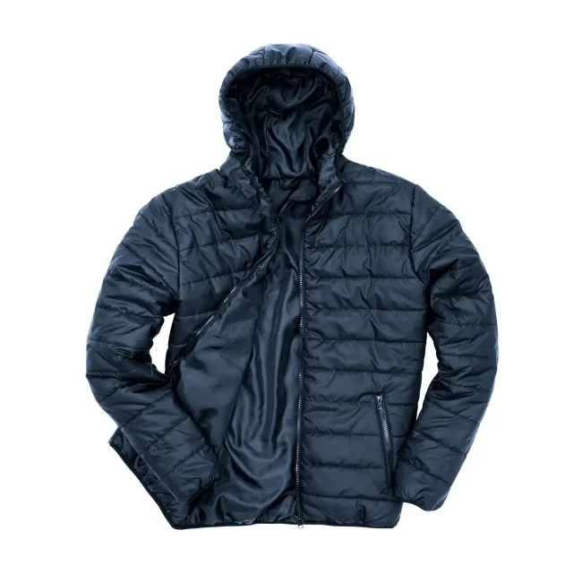Esterno, interno e fodera 100% poliestere. Fodera e zip in colore a contrasto, cappuccio integrato, zip frontale, dettaglio riflettente sul fianco, orlo su polsini,fondo e cappuccio in tinta con il body, tasche con zip, leggero e caldo, facile da comprimere.