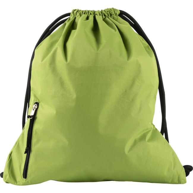 Zaino a sacca, chiusura a coulisse, vano frontale con chiusura lampo, dimensione sacca 49 x 40 cm, in pongee 190 T