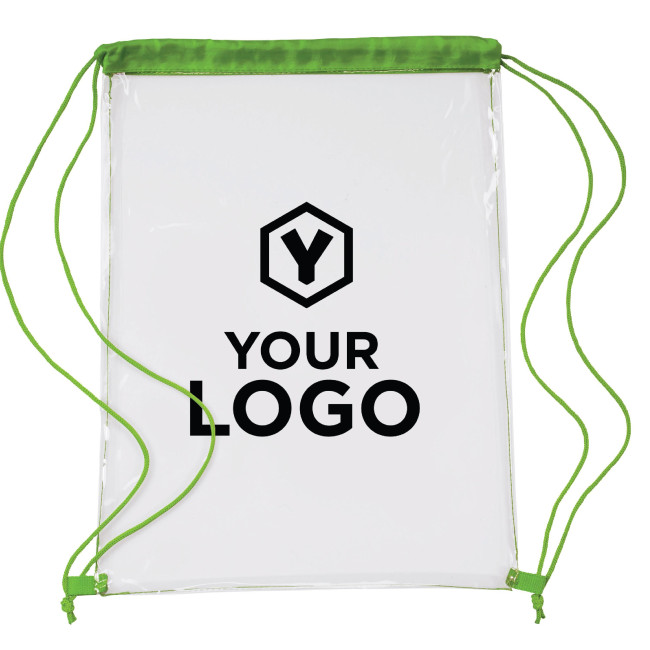 Zaino a sacca trasparente, chiusura a coulisse, cordino colorato, PVC