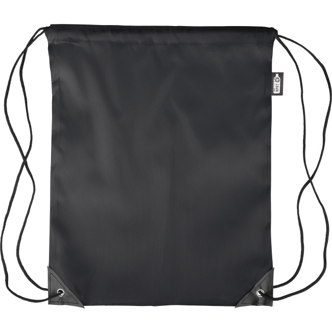 Zaino con chiusura a coulisse in poliestere rPET 210D con due angoli in PU neri sul davanti e cuciture interne. Presenta un cordino in nylon nero su ogni lato, una chiusura a cordino. Capacità: 5 l. Capacità di trasporto: 7 kg. Include etichetta rPET.