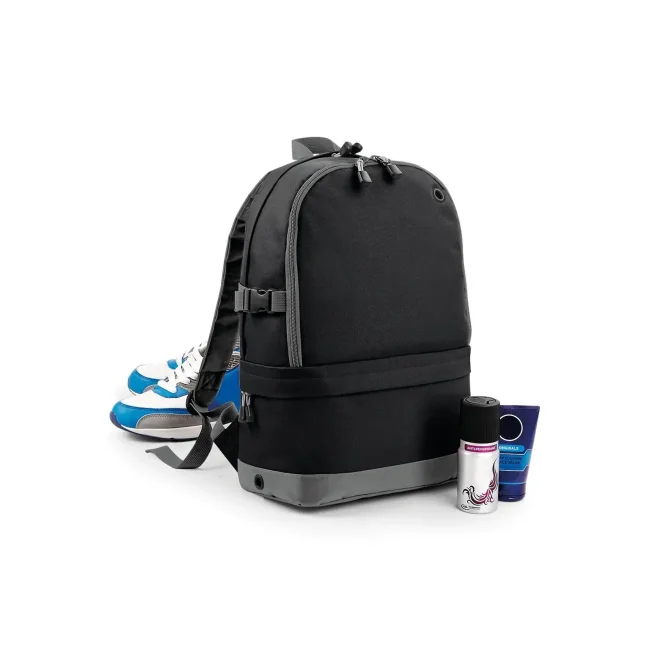 Zaino Sports Backpack realizzato in 100% combinazione di poliestere 600D/420D, dotato di doppio scomparto e schienale imbottito per un comfort ottimale. Include un gancio per presa a mano e un comparto organizer interno. Le dimensioni sono 44 x 31 x 16 cm, con una capacità di 18 litri.
