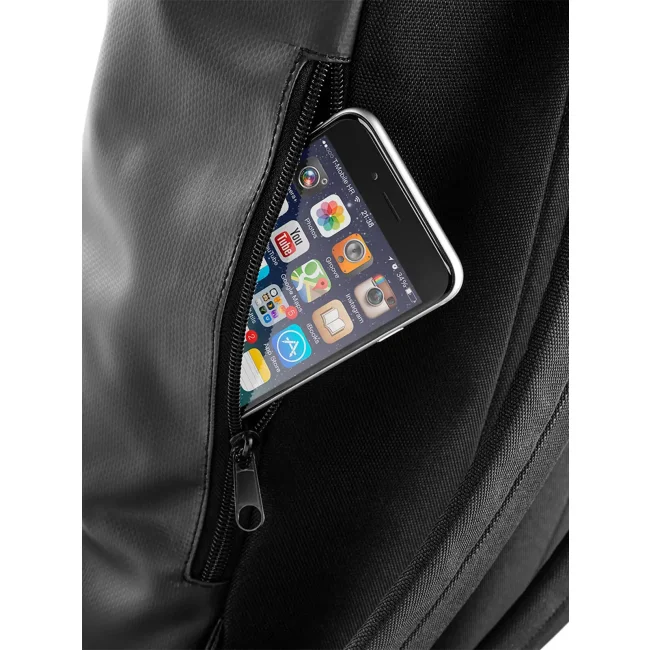 Zaino impermeabile realizzato in 100% PVC Tarpaulina, dotato di chiusura avvolgibile e tasca nascosta con cerniera. Le spalline imbottite e regolabili garantiscono comfort durante il trasporto. Le dimensioni sono 26 x 43 x 13 cm, con una capacità di 15 litri e un'area di stampa di 20 x 14 cm.