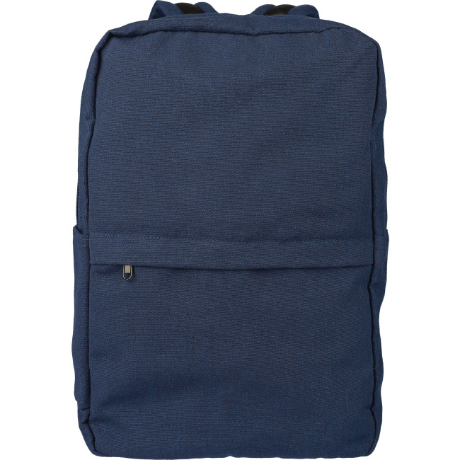 Zaino in policotone riciclato riciclato 330 g/m2 con fodera in poliestere 210D. Presenta un ampio scomparto con cerniera con scomparto imbottito per laptop da 15 pollici, due scomparti interni e due scomparti esterni, tra cui uno scomparto laterale e una piccola tasca anteriore con cerniera. Il design include spallacci imbottiti regolabili e una maniglia. Capacità: 14 l. Capacità di trasporto: 13 kg. Include etichetta rPet.