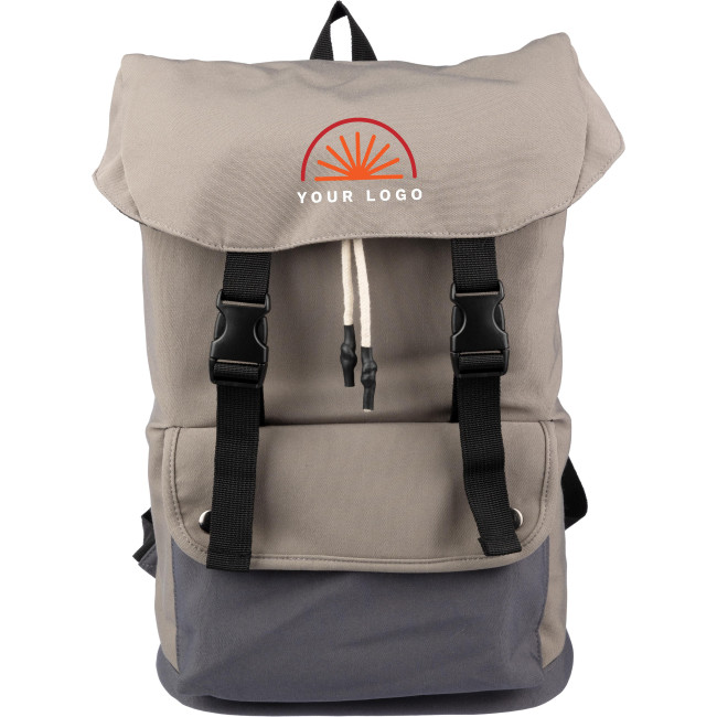 Zaino in poliestere 600 D (imitazione cotone), fodera in PU 210 D, supporto in schiuma PE 3 mm, ampio scomparto con coulisse, chiusura con fibbia, vano per laptop da 15 pollici, tasca sul lato anteriore con chiusura a bottoni in metallo, spallacci regolabili