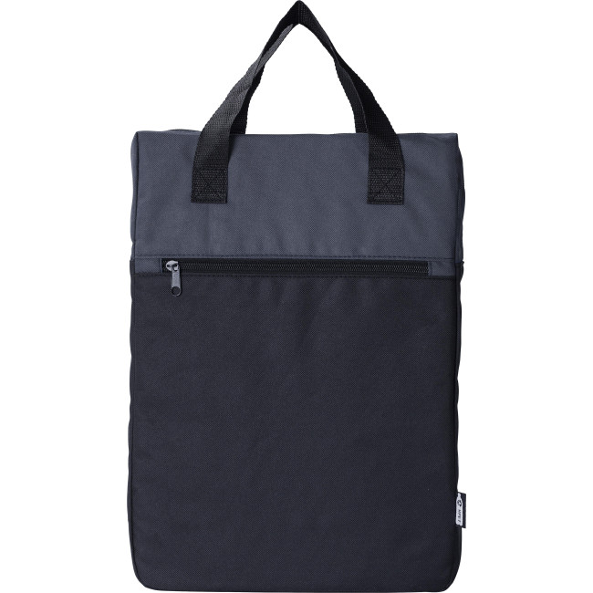 Zaino in poliestere 600 D rPET, include ampio scomparto, tasca frontale con chiusura lampo, dettaglio in colore nella parte superiore, nero nella parte inferiore, maniglie per il trasporto sulla parte superiore