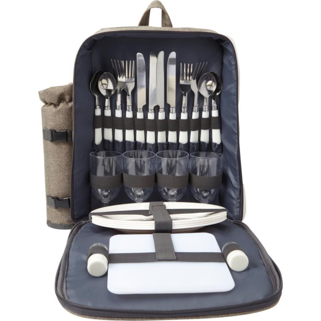 Zaino Pic-Nic per 4 persone, scomparto termico, accessori in ABS per quattro persone, tasca frontale, portabottiglie su di un lato, in poliestere 600 D