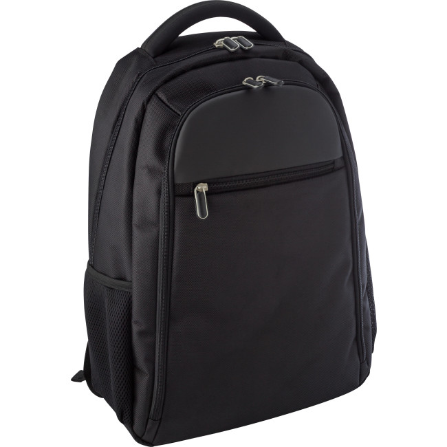 Zaino portacomputer da 15 pollici, ampio scomparto, doppia tasca frontale con parte superiore liscia adatta per la stampa, schienale imbottito, spalline regolabili, in poliestere 1680 D