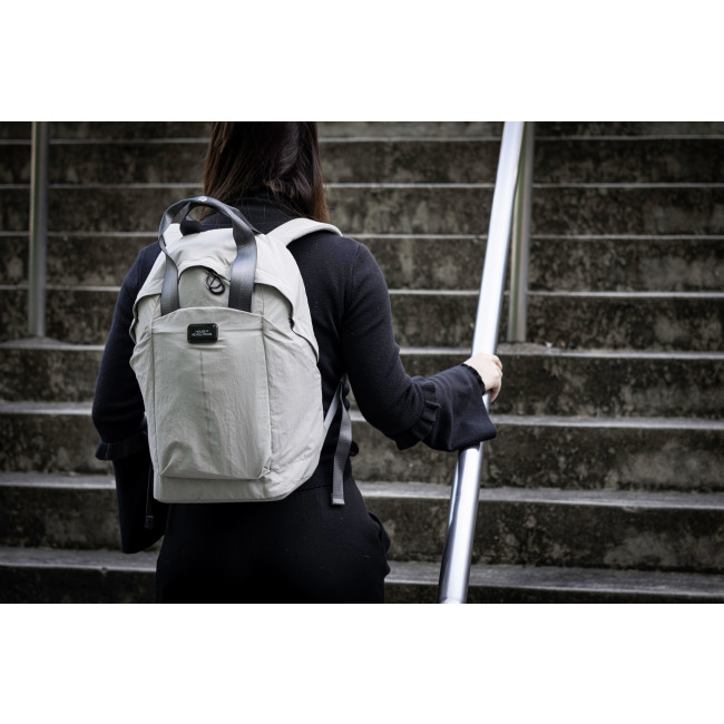 Zaino Pulse della Urban Vibe Bag Collection, realizzato in nylon riciclato ultraleggero. Con una capacità di 17 litri, dispone di vano imbottito per laptop da 16 pollici, cinque scomparti per un'organizzazione impeccabile e dettagli riflettenti. La finitura idrorepellente e il passante per trolley ne completano il design.