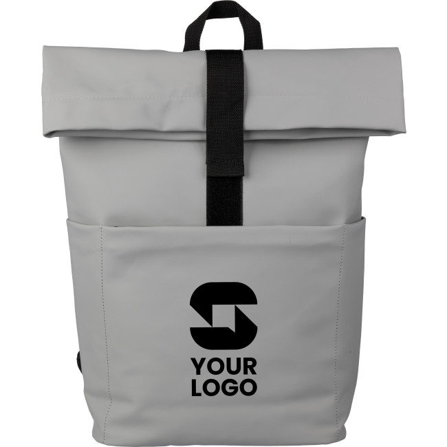 Zaino rolltop in pelle PU, fodera in PU 210 D, supporto in schiuma PE 5 mm, include vano per laptop da 15 pollici, tasca sul lato anteriore con chiusura lampo