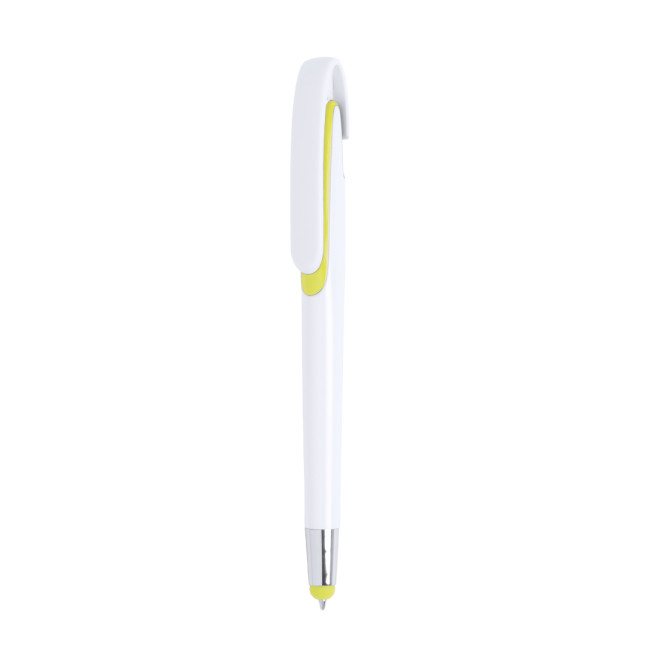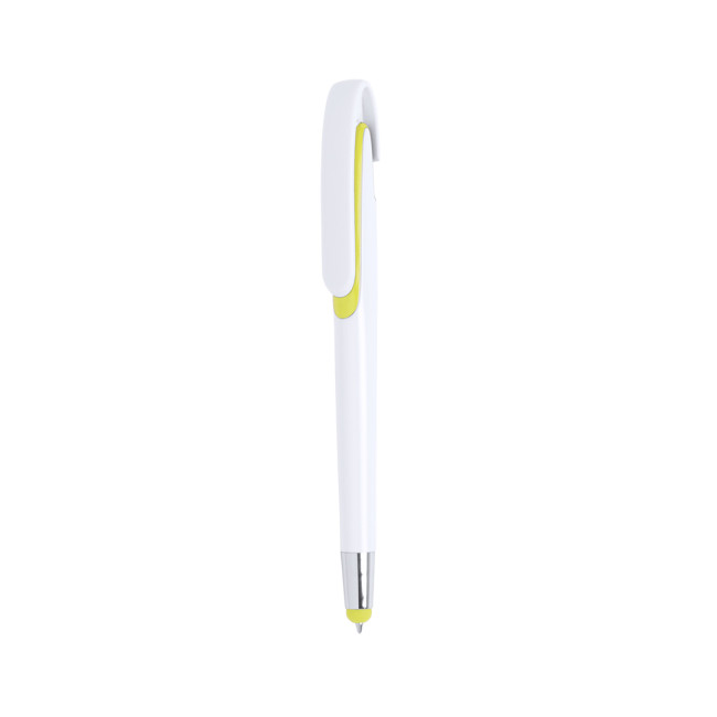 Penna touch con meccanismo a pulsante, fusto con finitura lucida bianca e accessori in un'ampia gamma di colori vivaci. Con maxi clip e inchiostro blu.