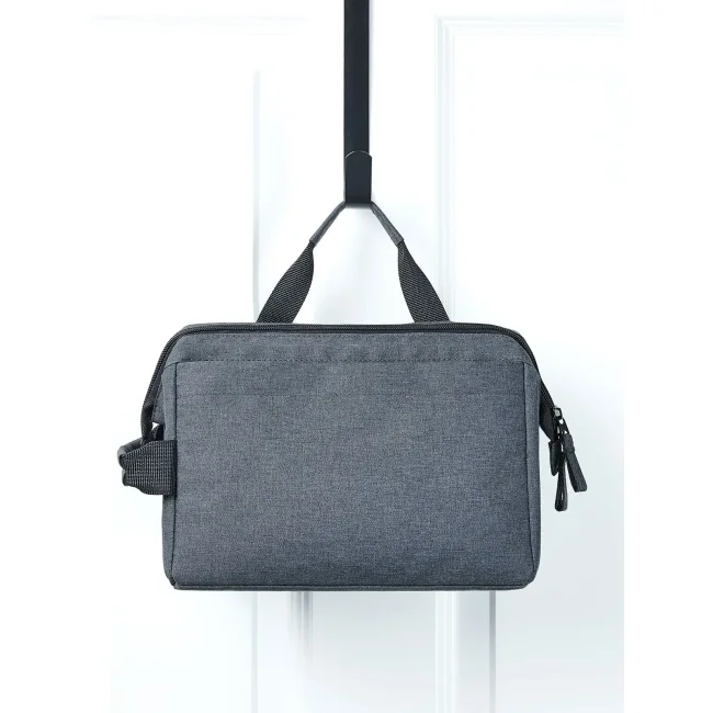RPET. Materiale esterno rPET. Borsa con chiusura lampo con solida apertura rigida, ampio scomparto principale imbottito con organizer, tasca anteriore con chiusura lampo, con manico.