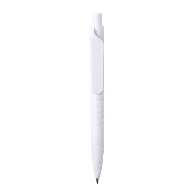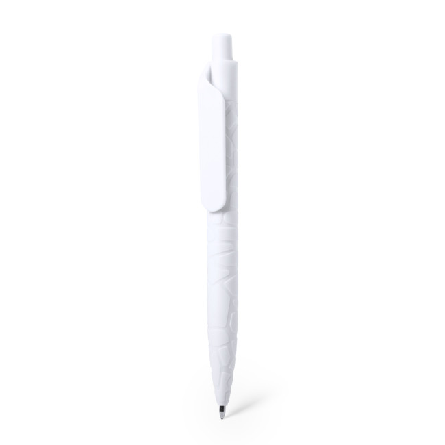 Penna della Linea Natura con meccanismo a pulsante. Corpo fustellato realizzato con estratti di pietra Naturale, che aiuta a ridurre l'uso della plastica, oltre a fornire una finitura liscia e resistente. In bianco con logo della pietra Naturale sulla parte superiore, cartuccia jumbo e inchiostro blu.